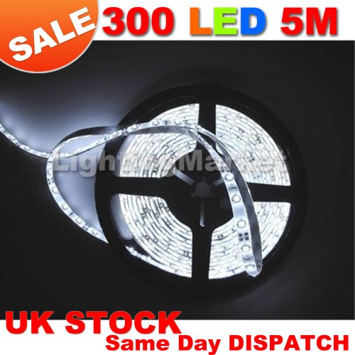 Cool White 5M (16.4ft) 300 LED Strip Light Flexible TAPE RIBBON/ 5 Metres with 300 SMD LEDs DC 12V-- IDEAL FOR KITCHENS, HOME LED LIGHTING, BARS, RESTAURANTS, ETC ** FREE DELIVERY!! | Review