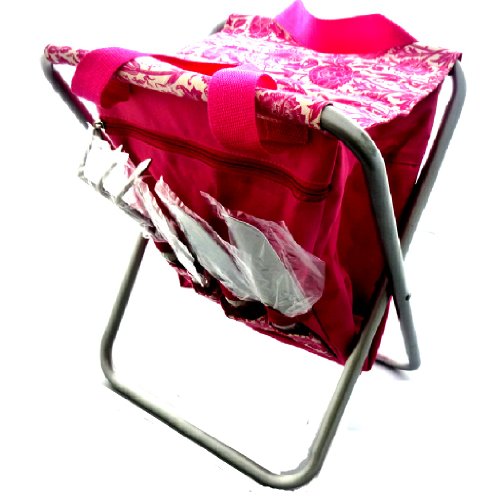 - NEW FLORAL PINK ROSE FOLDING GARDENING STOOL WITH TOOLS
