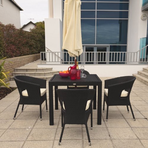[ See the full product description of Cozy Bay® Phuket 4 Seater Rattan Furniture Black 4 Line Restaurant Stackable Bistro Set - Bistro sets from the Manufacturer here ]