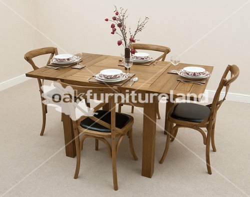 [ See the full product description of 3ft x 3ft Solid Oak Rustic Extending Dining Set + 4 Rustic Bistro Oak & Black Leather Dining Chairs - Bistro sets from the Manufacturer here ]