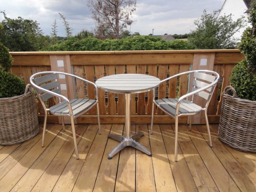 Bistro 2 Chairs & 60Cm Diameter Flip Top Top Table, Made From Aluminium And Polywood, Available In Black Or Grey Finish. Normal Price £137.95, Offer Price £119.99. Bistro Chair Height: 74Cm Depth: 54.5Cm Length: 56.5Cm Slat Width: 5Cm Slat Thickness: 1.2Cm Welded Frame For Extra Strength 25Mm Diameter Tube 1.5Mm Gauge For Extra Sturdiness Chair Legs With Rubber Tips Bistro Table Diameter: 60Cm Height: 74Cm 4 Legs With 5Kgs Added Base Weight For Extra Stability Adjustable Table Feet.