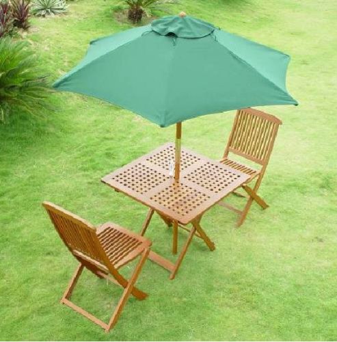 - INCLUDES- 1 X TABLE 70 X 70CM, 2 X FOLDING CHAIRS 1 X 1.8M PARASOL