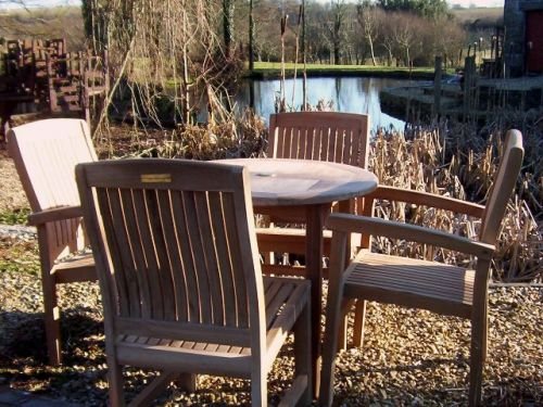 A very tidy sustainable Grade A teak garden set which is perfect for a smaller garden or courtyard, yet extremely comfortable and can dine up to 4 people. Included are 2 x Dining teak chairs and 2 x teak armchairs. Along with all of our teak garden furniture, all of the pieces are manufactured from sustainably sourced timber and produced to our highest quality specifications.